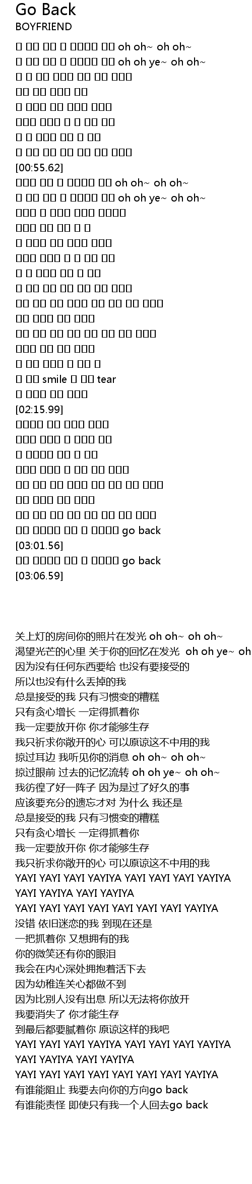 | [02:57.33] | 누가 말리겠어 이런 날 너에게로 go back |