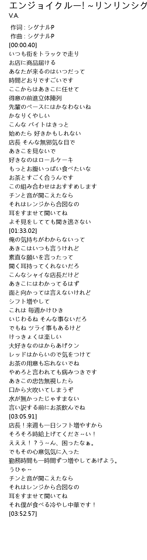 | [03:24.07] | そろそろ時給上げてくださ~い! |