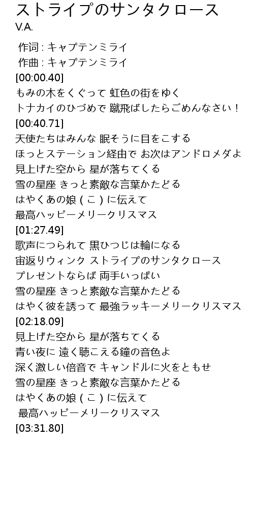 | [01:43.95] | 宙返りウィンク ストライプのサンタクロース |