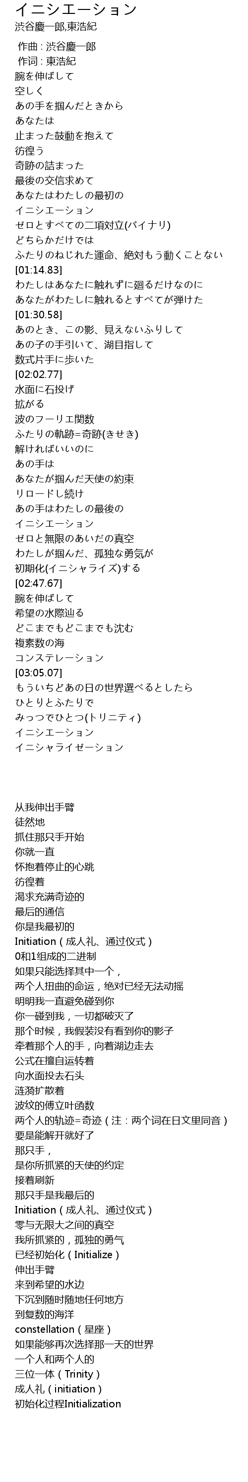 | [00:57.85] | Initiation(成人礼、通过仪式) |