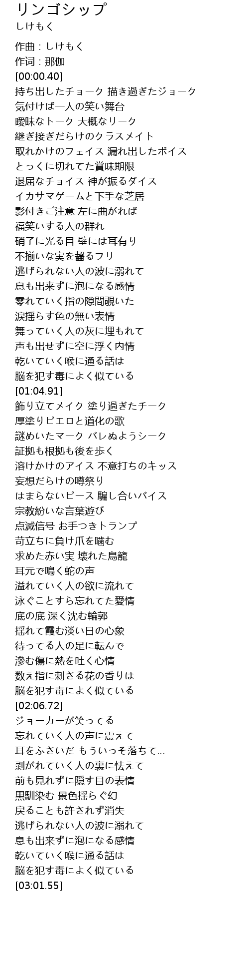 | [00:00.00] | 作曲:しけもく |