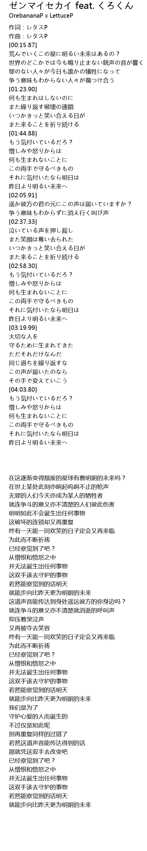 | [00:41.56] | 世界のどこかでは今も鳴り止まない銃声の音が響く |