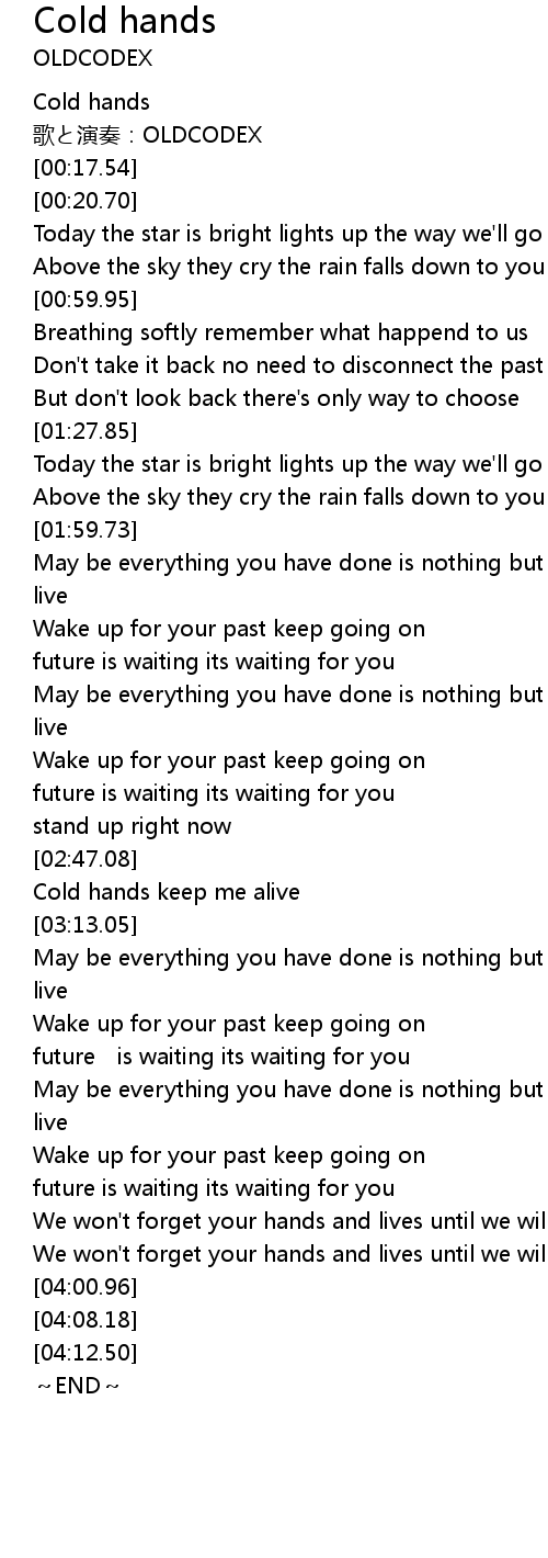 | [00:13.45] | 歌と演奏:OLDCODEX |