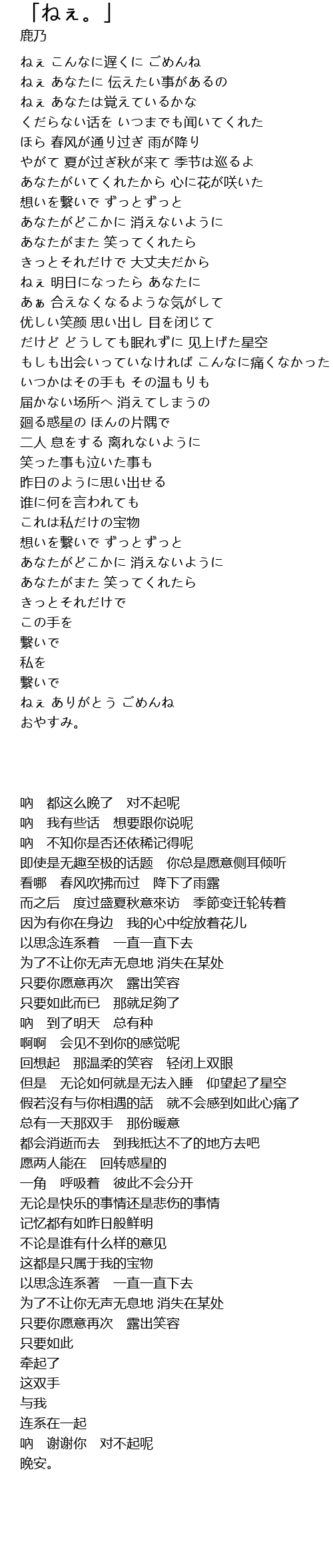 | [00:00.67] | ねぇ こんなに遅くに ごめんね |