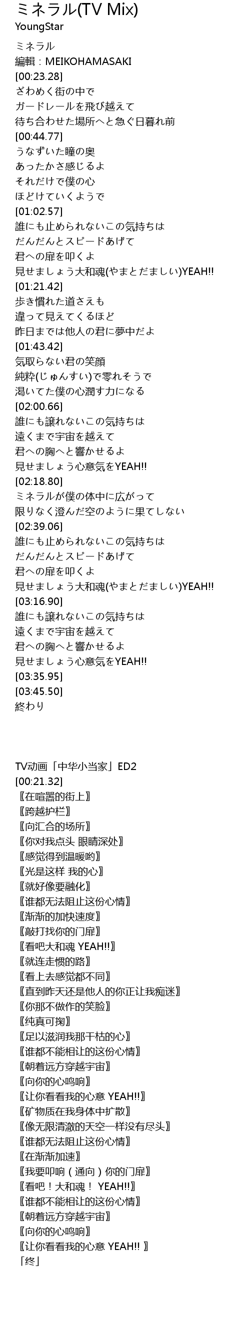 | [00:21.32] | 編輯:MEIKOHAMASAKI |
