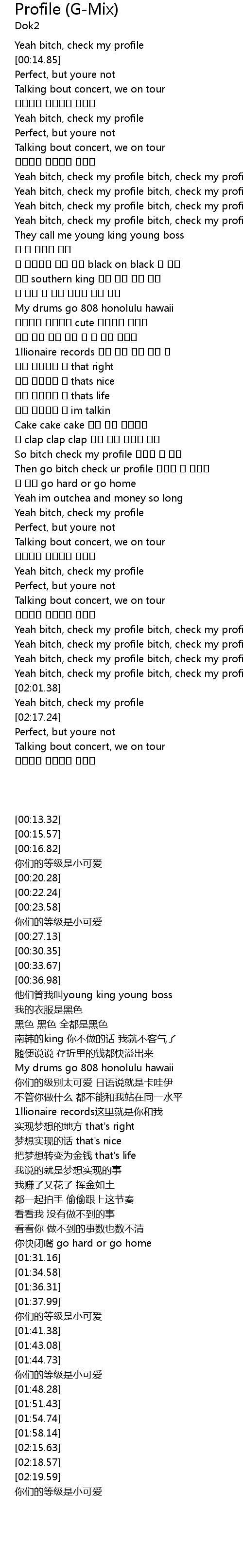 | [01:58.14] | Yeah bitch, check my profile bitch, check my profile |