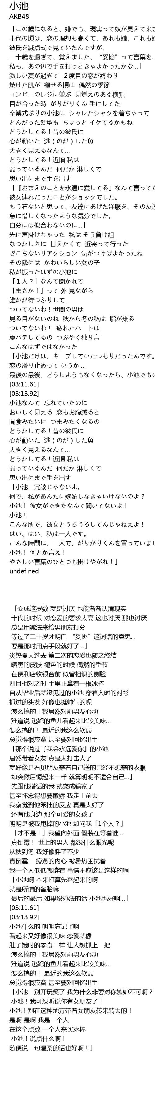 | [01:33.86] | 「『おまえのことを永遠に愛してる』なんて言ってた小池が、 |