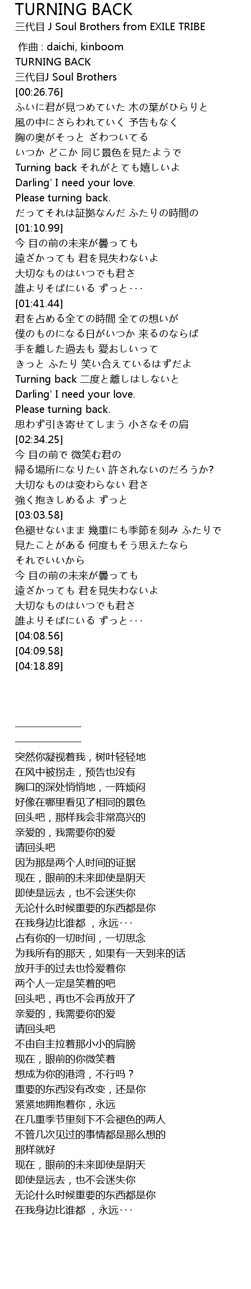 | [02:15.57] | Turning back 二度と離しはしないと |