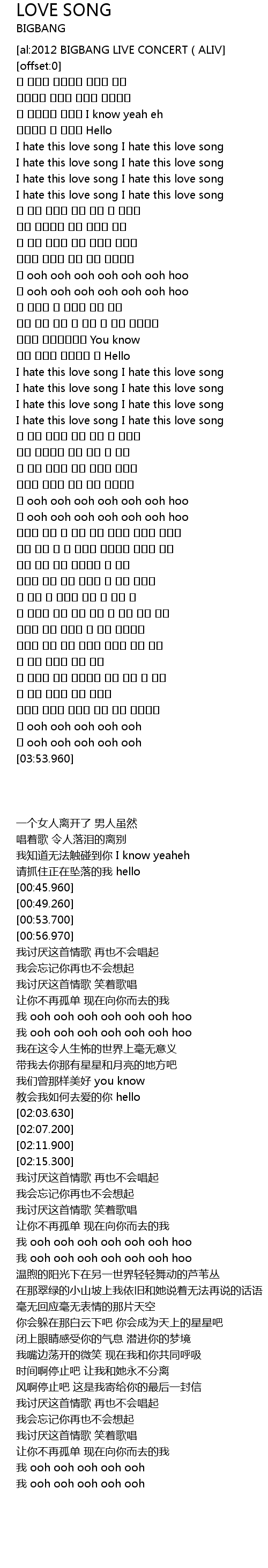 | [00:45.960] | I hate this love song I hate this love song |