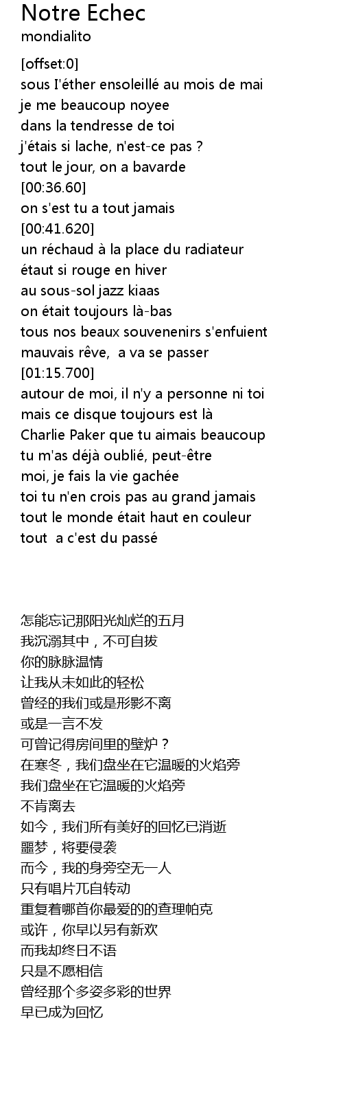 | 歌曲 | Notre Echec |