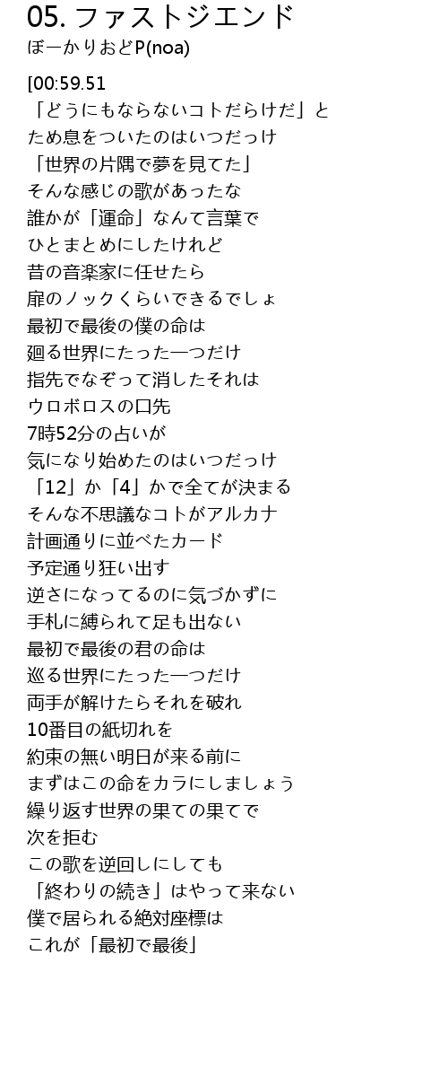 | [03:07.01] | 繰り返す世界の果ての果てで |