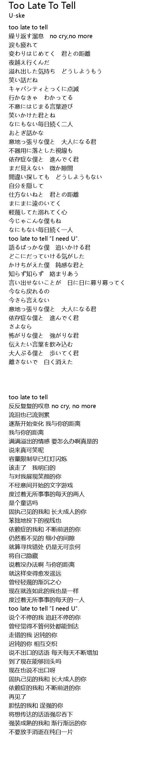 | [02:18.16] | too late to tell "I need U". |