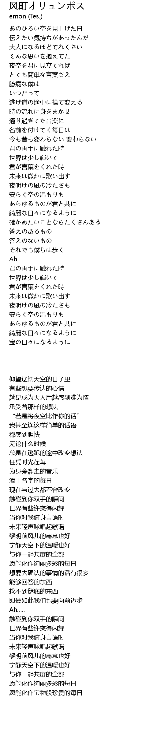 | 歌手 | emon (Tes.) |