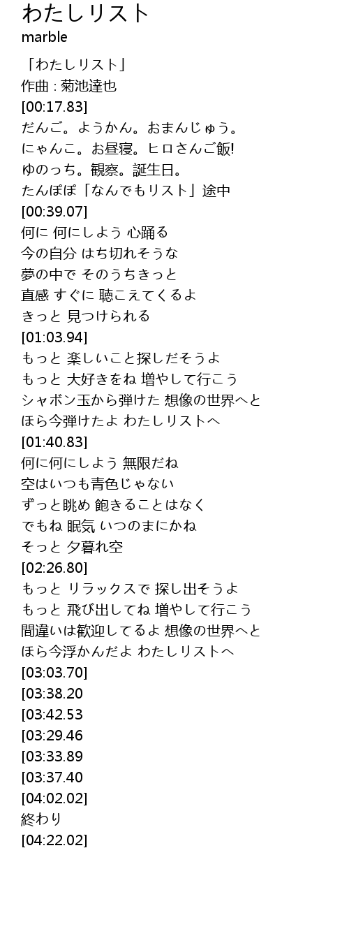 | [00:35.06] | たんぽぽ「なんでもリスト」途中 |