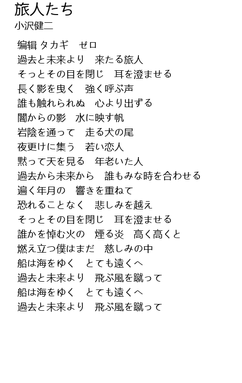 | [00:13.401] | 過去と未来より 来たる旅人 |