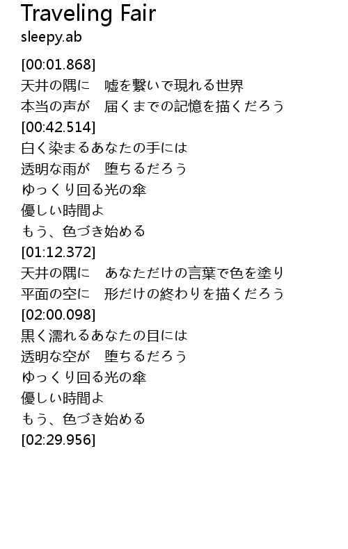 | [00:51.892] | 透明な雨が 堕ちるだろう |