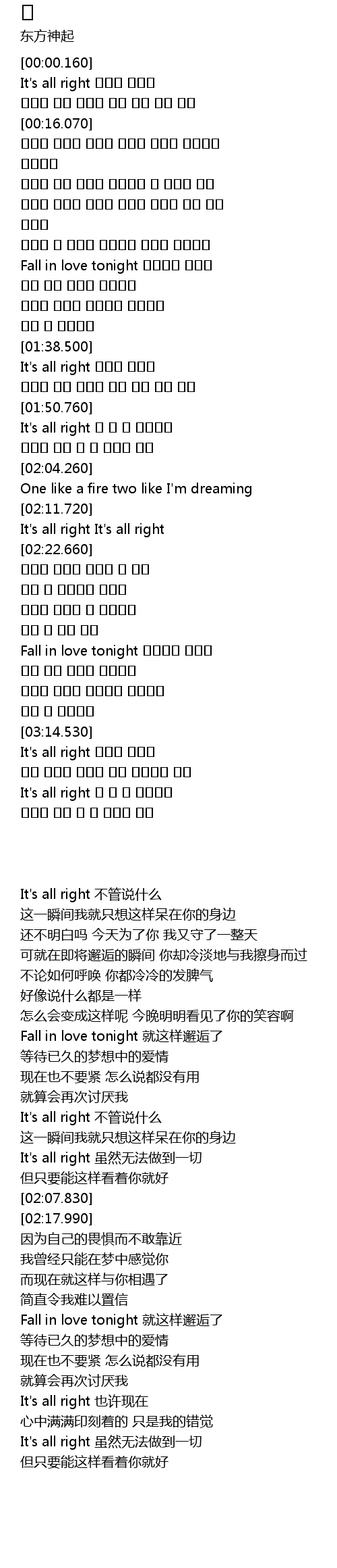| [02:54.050] | Fall in love tonight 就这样邂逅了 |
