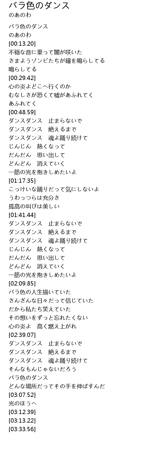 | [00:55.39] | ダンスダンス 絶えるまで |