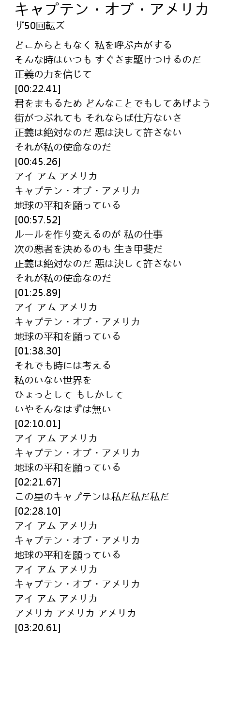 | [03:09.92] | アメリカ アメリカ アメリカ |