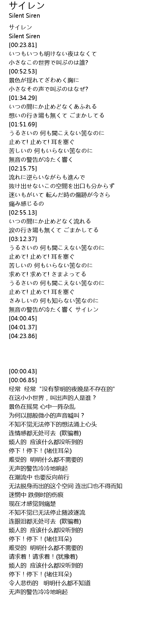 | [00:06.85] | Silent Siren |