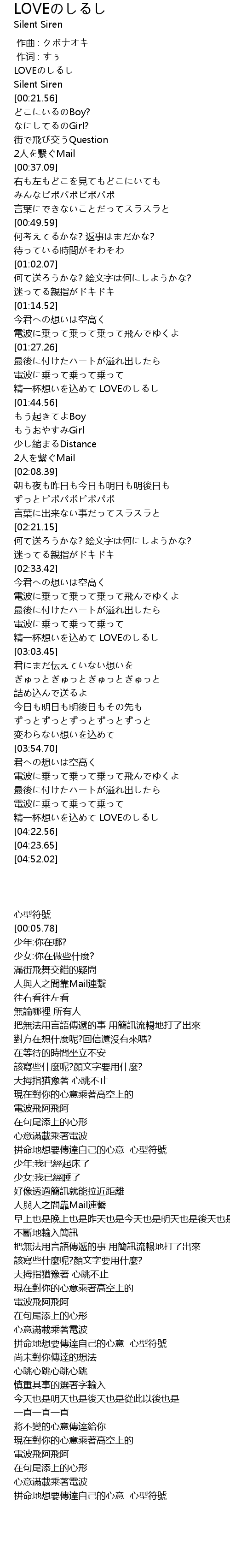 | [04:15.78] | 拼命地想要傳達自己的心意 心型符號 |