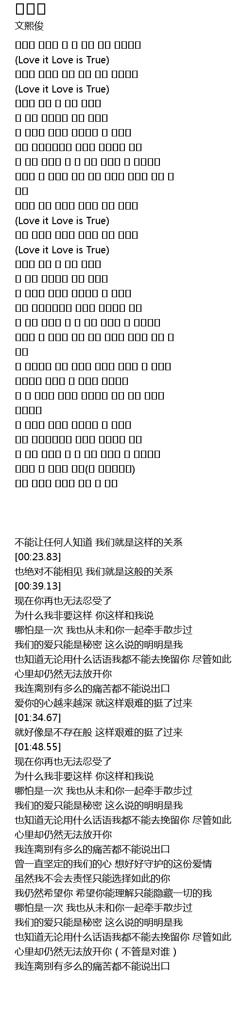 | [00:15.96] | 不能让任何人知道 我们就是这样的关系 |