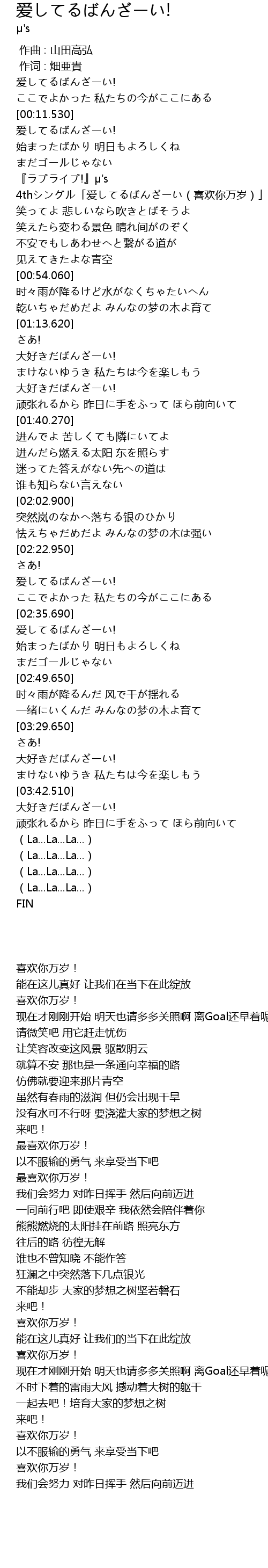 | [00:26.680] | 『ラブライブ!』μ's 4thシングル「爱してるばんざーい(喜欢你万岁)」 |