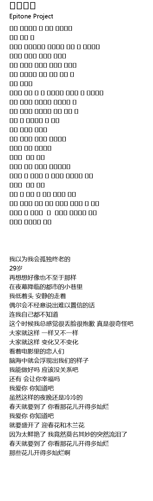 | [03:02.12] | 이제는 곧 봄이야 봐 꽃들이 피어나고 있어 |