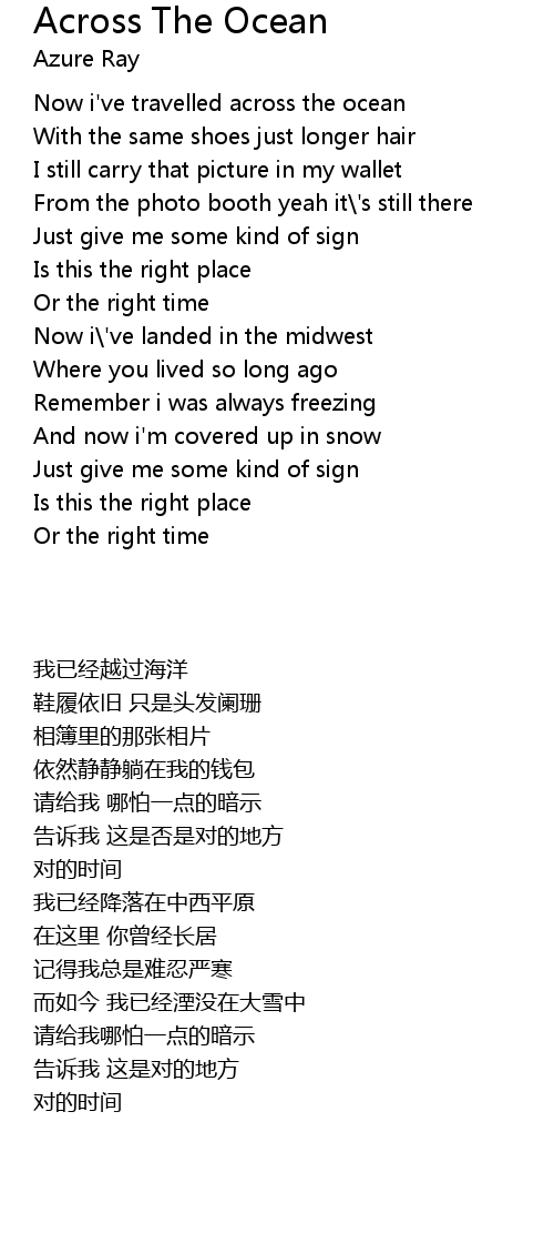 Now i've travelled across the ocean |