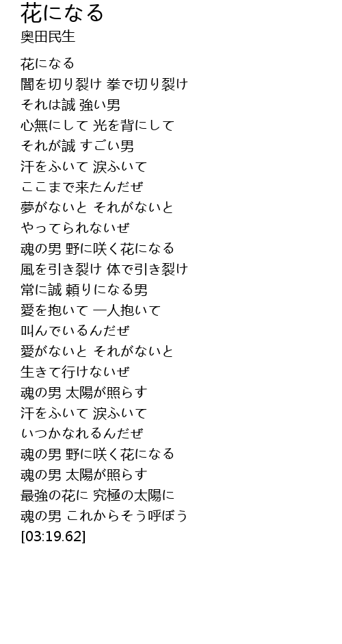 | [02:44.38] | 魂の男 野に咲く花になる |