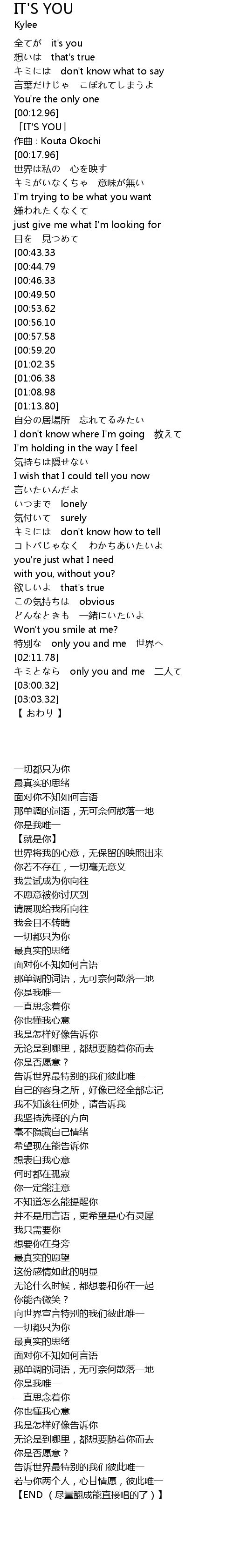 | [00:13.96] | 「IT'S YOU」 |
