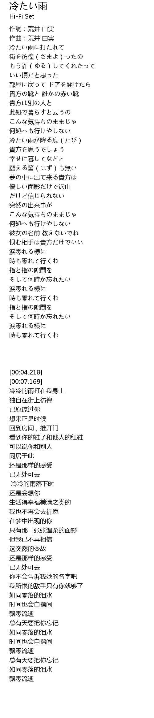 | [01:16.477] | 冷たい雨が降る度(たび) |