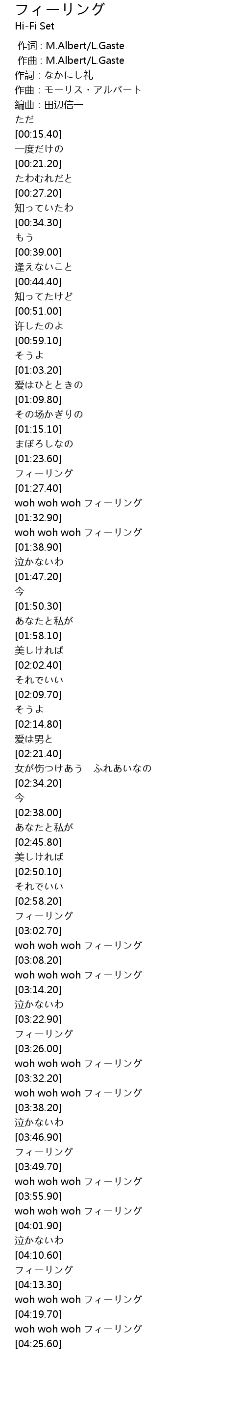 | [00:05.00] | 作曲:モーリス・アルバート |