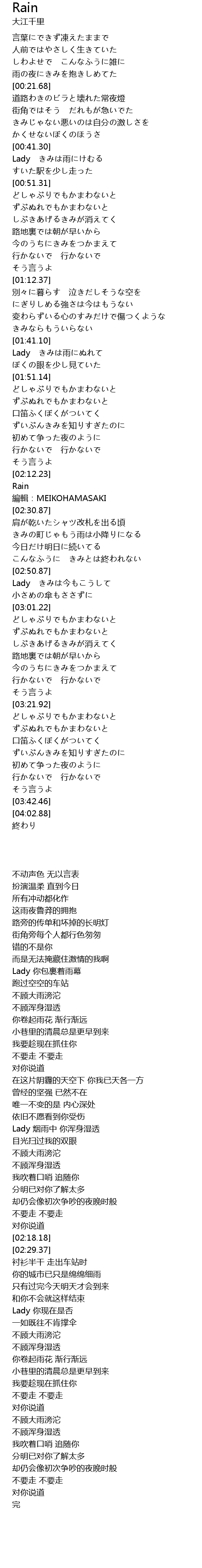 | [00:43.12] | Lady 你包裹着雨幕 |
