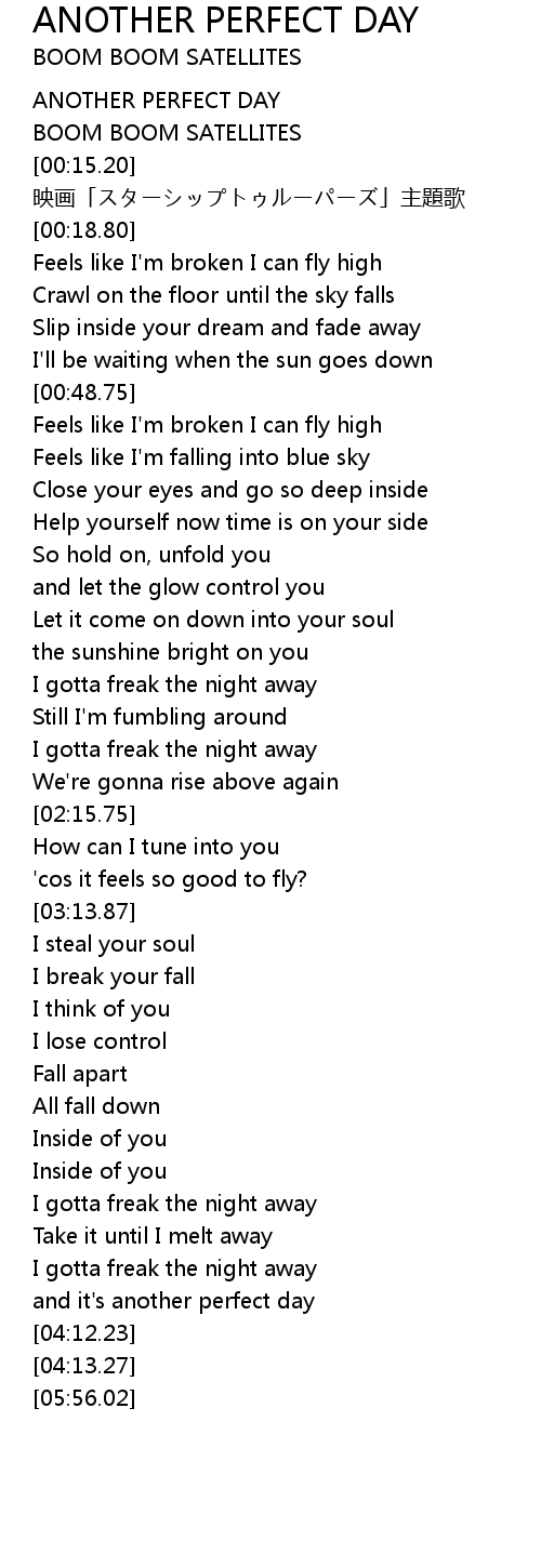 | [00:00.00] | ANOTHER PERFECT DAY |
