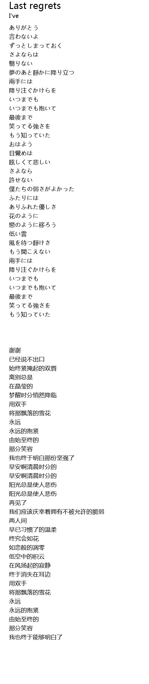 | 歌曲 | Last regrets |