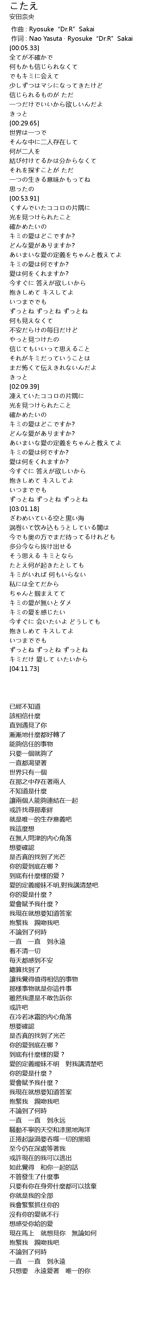 | [00:01.00] | zuo ci : Nao Yasuta Ryosuke" Dr. R" Sakai |