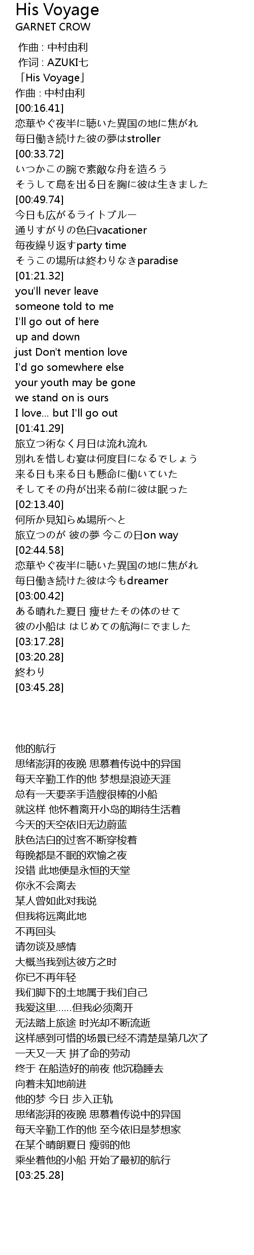 | [00:00.41] | 他的航行 |