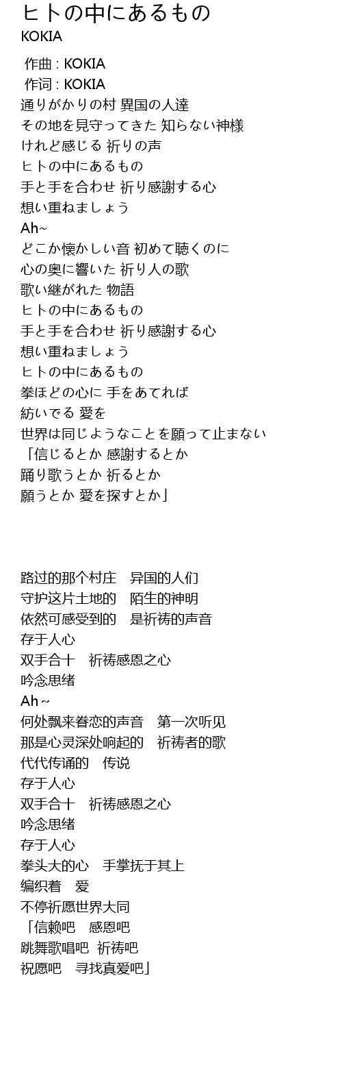 | [02:19.380] | 心の奥に響いた 祈り人の歌 |