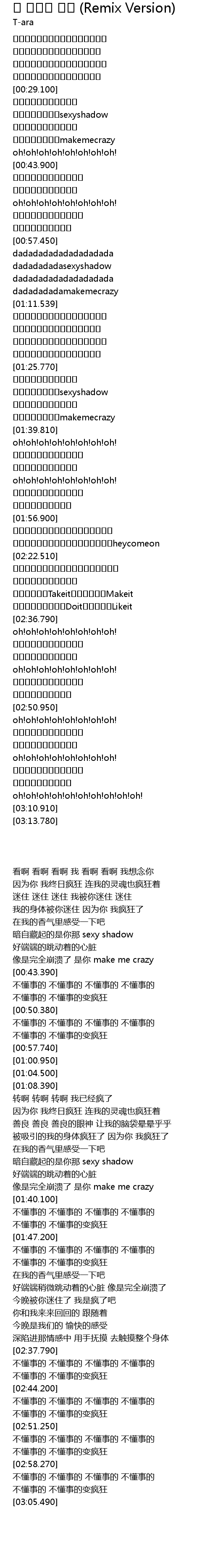 | [01:35.930] | 다망가질듯이너는makemecrazy |