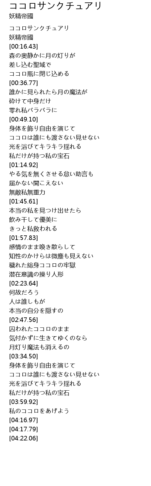 | [00:00.00] | ココロサンクチュアリ |