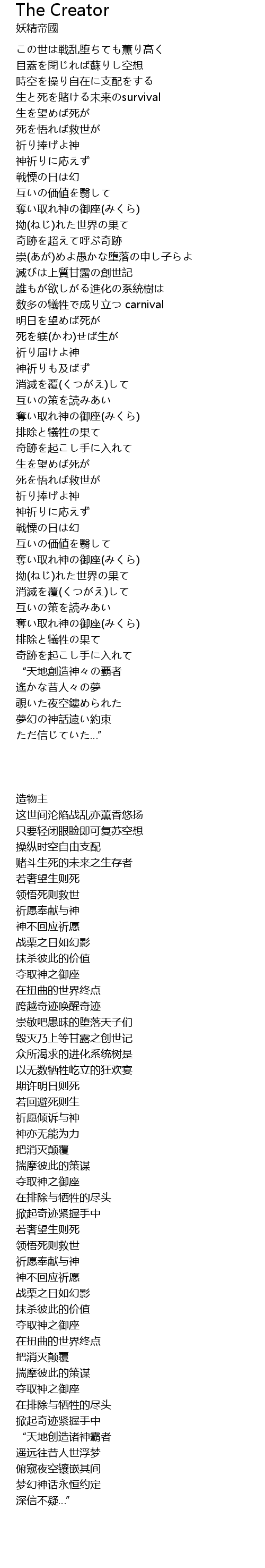 | [03:26.15] | “天地创造诸神霸者 |