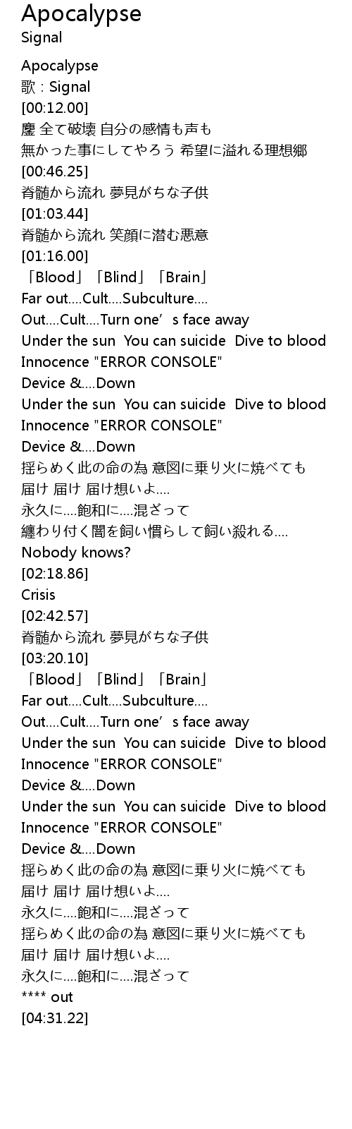 | [03:38.93] | Innocence "ERROR CONSOLE" |