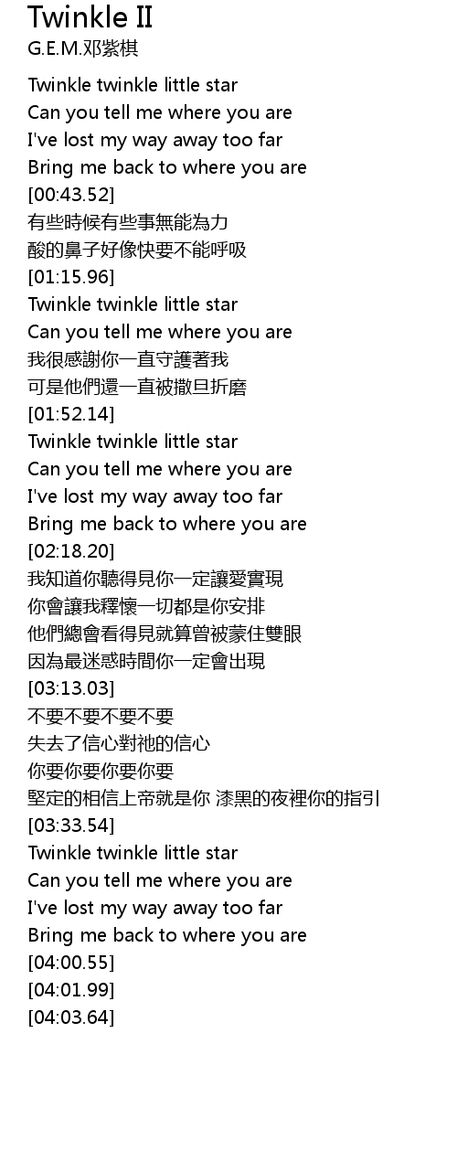 | [03:36.64] | Twinkle twinkle little star |