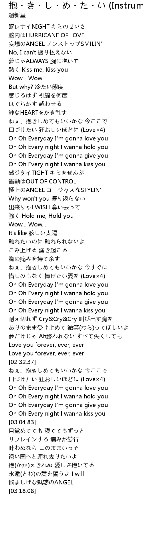 | [02:43.83] | 口づけたい 狂おしいほどに (Love×4) |