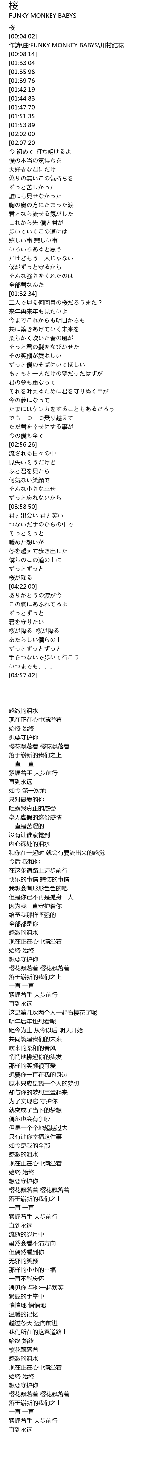 | [04:34.45] | 樱花飘落着 樱花飘落着 |