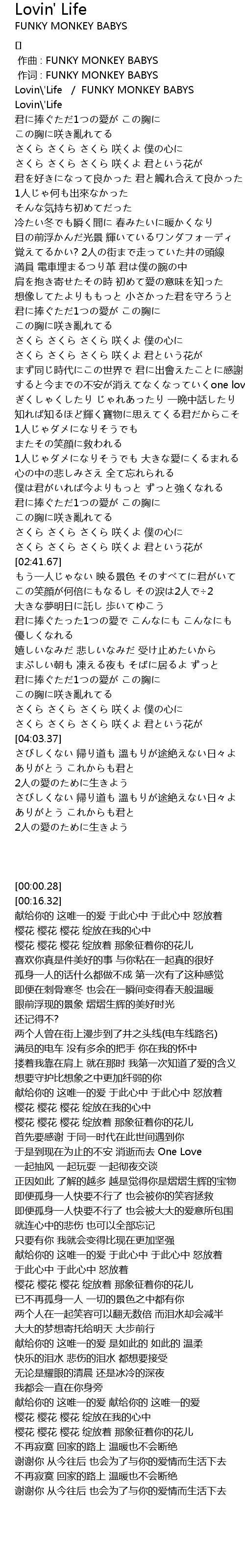 | [00:00.28] | Lovin' Life FUNKY MONKEY BABYS |