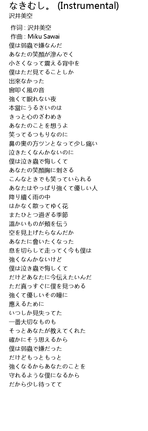 | [00:00.000] | 作词 : 沢井美空 |