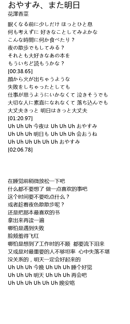 | [01:52.32] | Uh Uh Uh Uh Uh Uh おやすみ |
