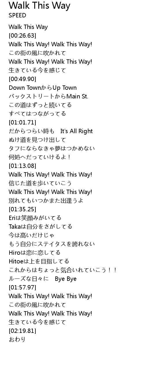 | [01:59.17] | Walk This Way! Walk This Way! |